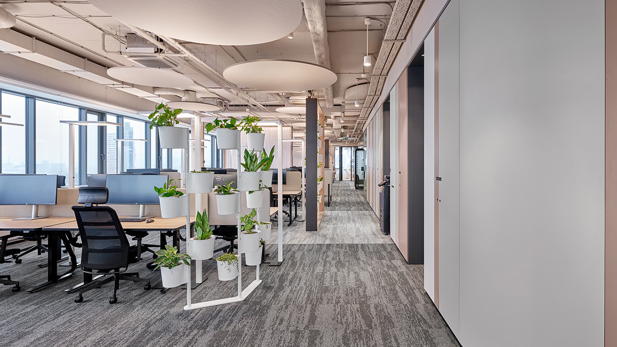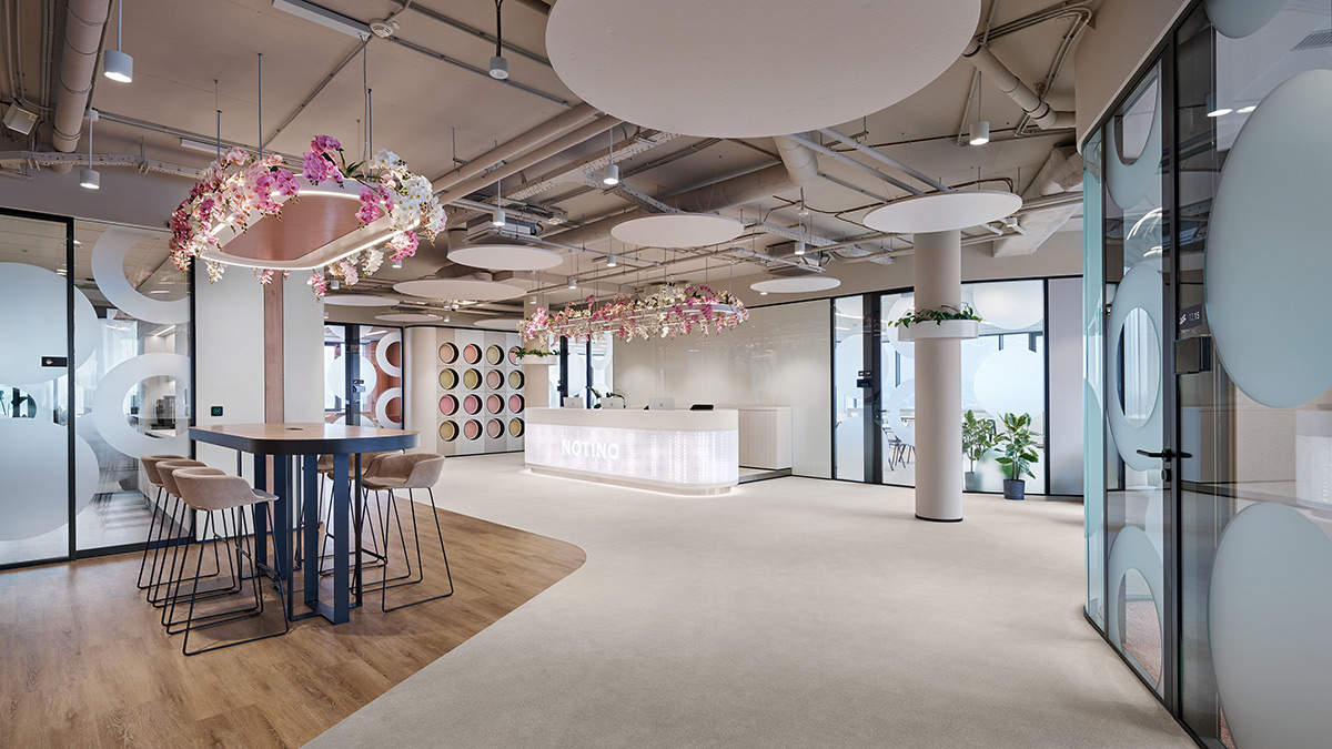 V súčasných otvorených pracovných priestoroch je kvalitná akustika nevyhnutným predpokladom pre pohodu, zdravie a produktivitu zamestnancov. Notino si túto skutočnosť uvedomovalo, a preto kládlo dôraz na riešenie, ktoré zníži hluk, eliminuje ozvenu a zároveň esteticky zapadne do celkového dizajnu interiéru.